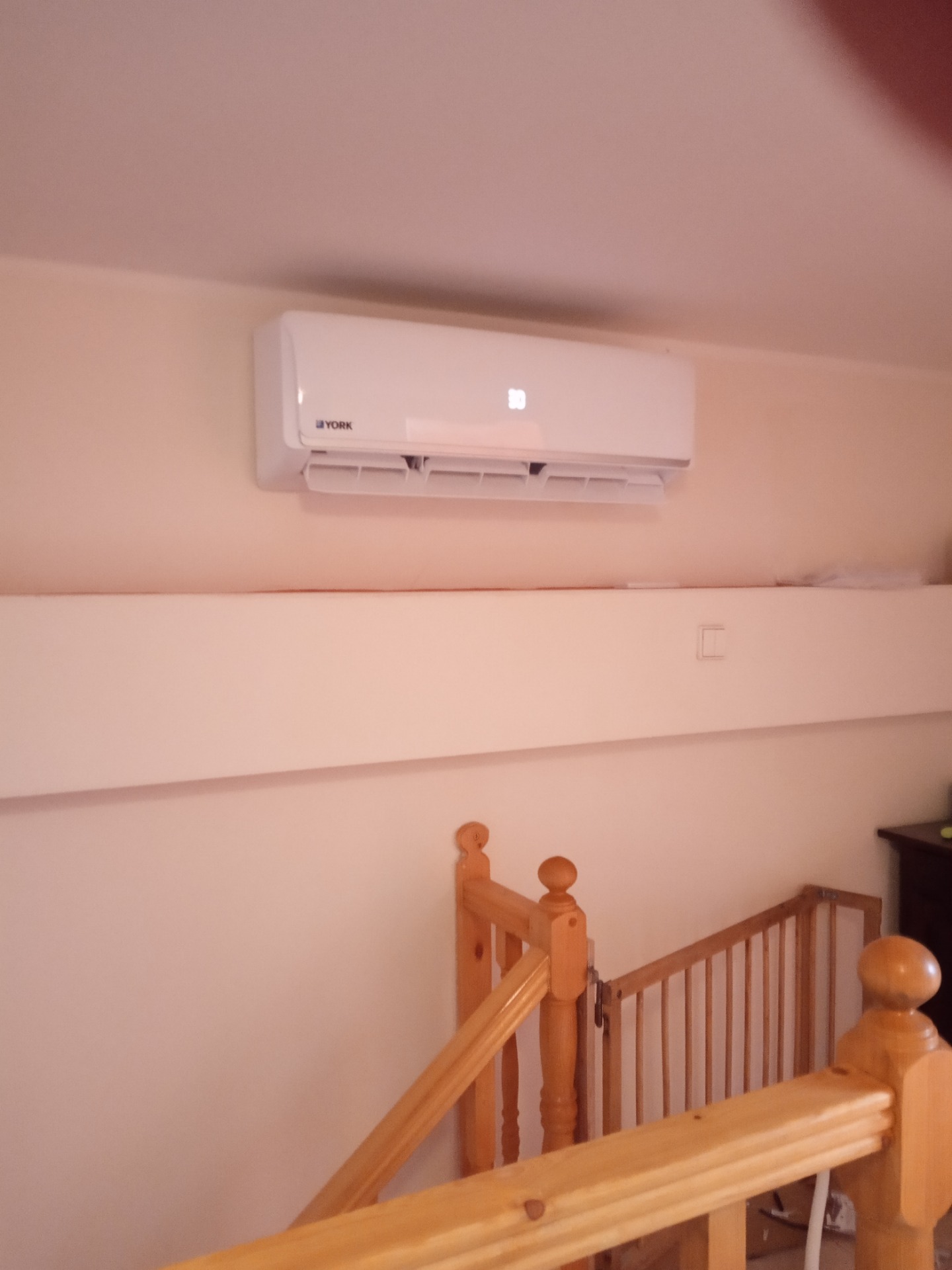 Invertní klimatizace s tepelným čerpadlem 6,2 kW, vnitřní jednotka pro podkroví + chodbu, venkovní jednotka umístění na půdě.